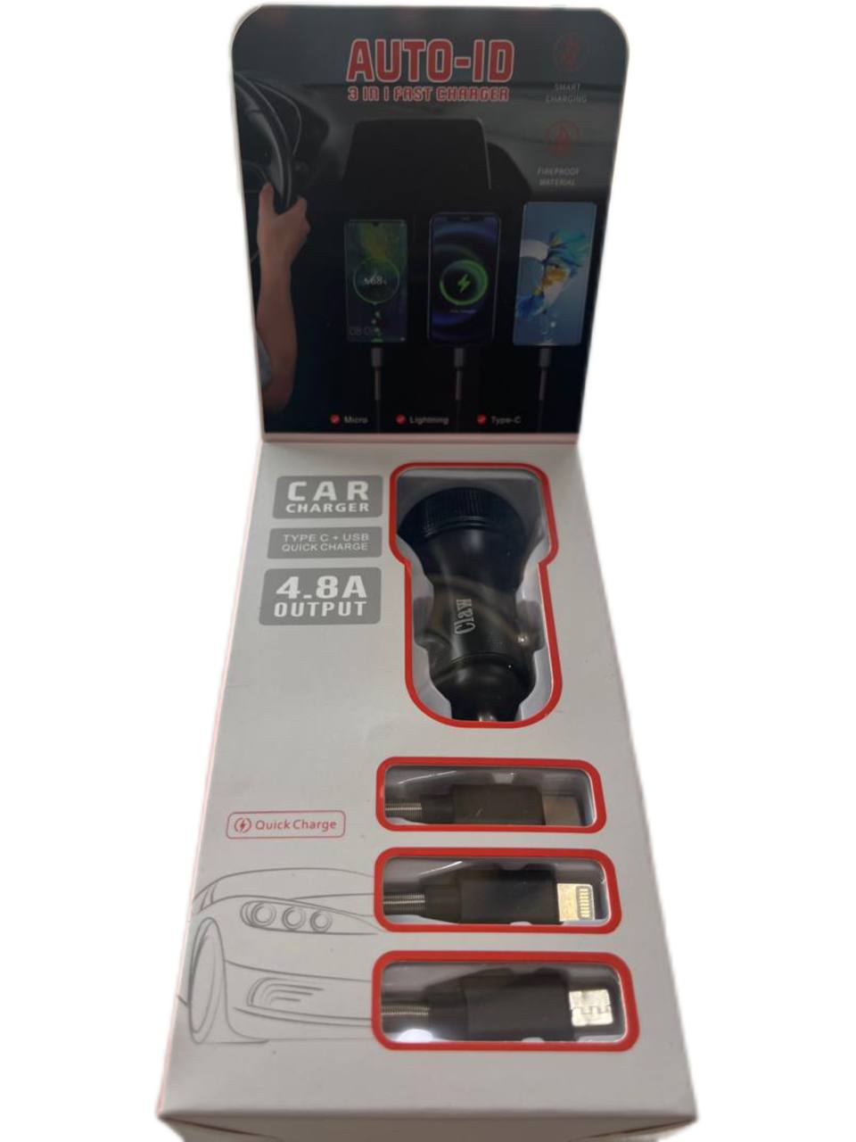 شارژفندکی از برند باکیفیت کلاو همراره سه کابل تایپ B ,cو ایفون قابل استفاده برای همه ماشینها و موبایلها